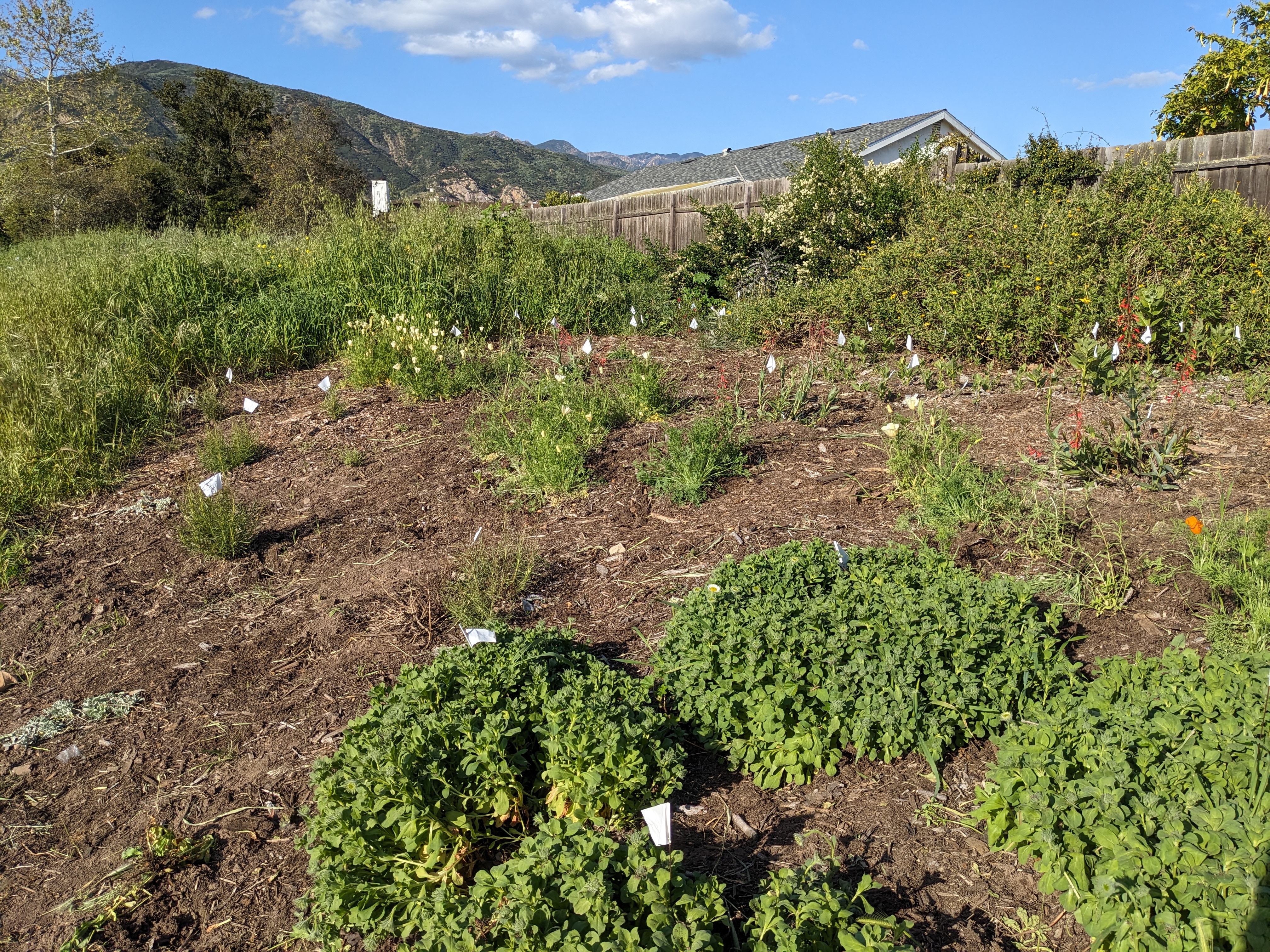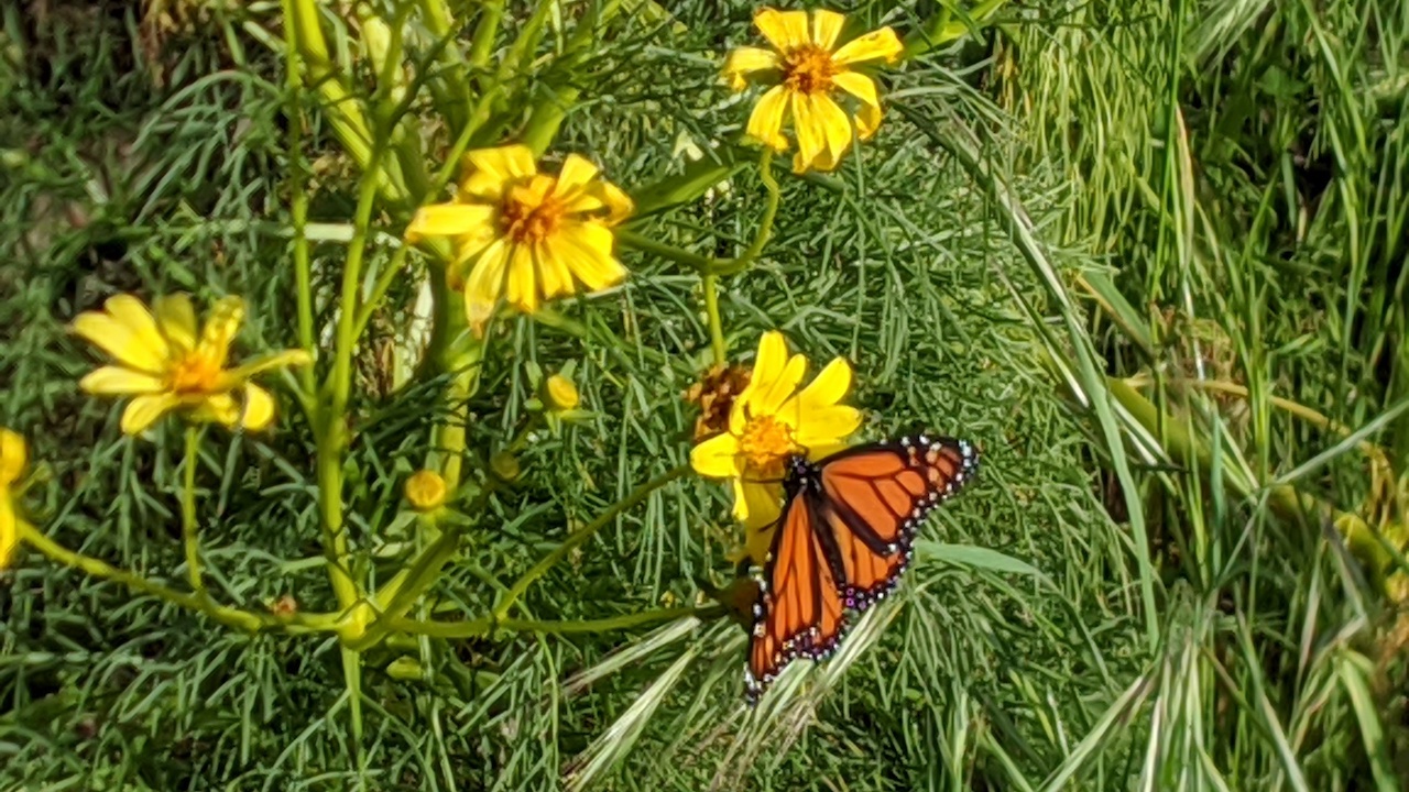 In October 2017, Ray Kolbe initiated the project to Beautify Santa Monica creek trail. The goal was to create habitat for pollinators. He was focussed on lepidoptera, particularly the Monarch. But he also planted California natives for bees, hummingbirds, and other pollinators. This gallery is in reverse chronological order, with the latest images appearing first and the original pictures before work was done, at the end. The photos are clickable, presenting a larger picture in a new tab.